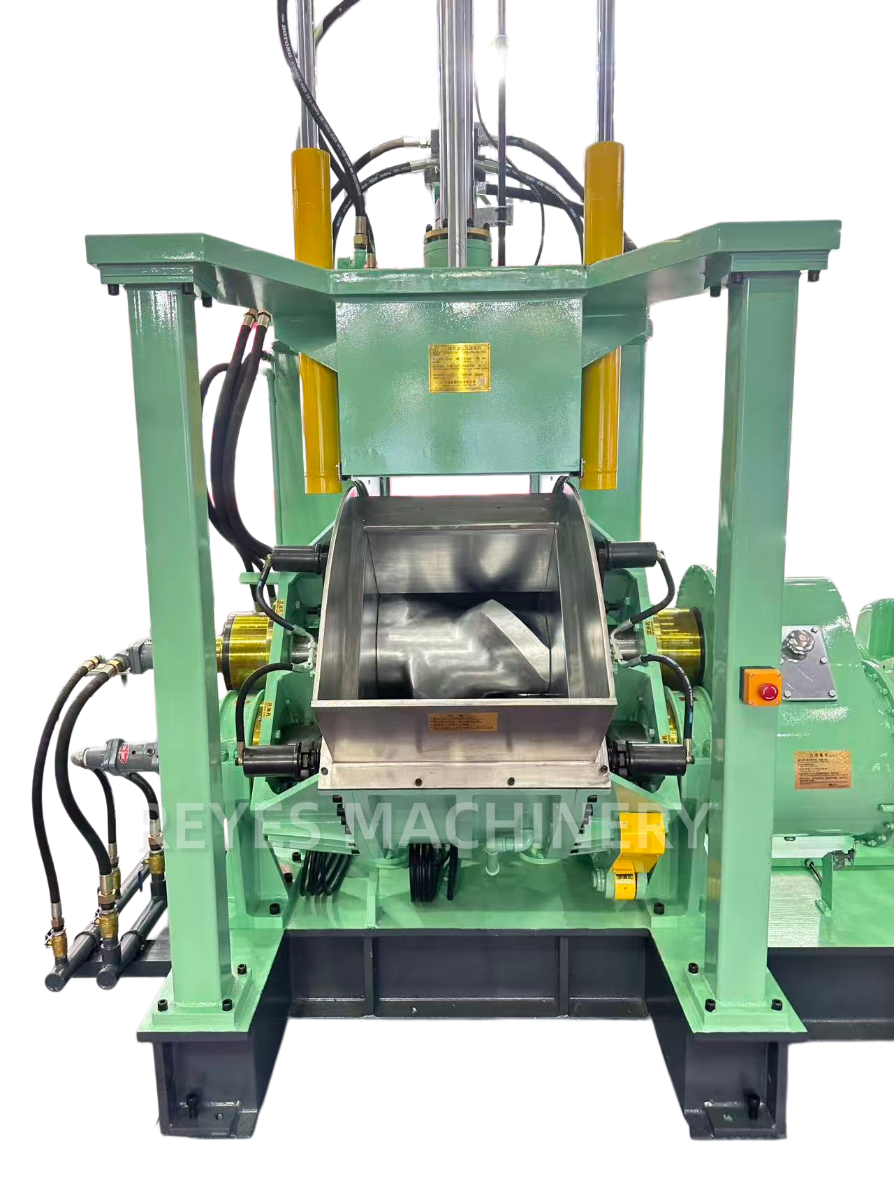 - Feeding from back door on the frame (or separate top door) is convenient for continuous process operation in production line. The mixing chamber is able to turn forward by 140 around the front rotors to discharge and is easy for changing pigments and cleaning the chamber.